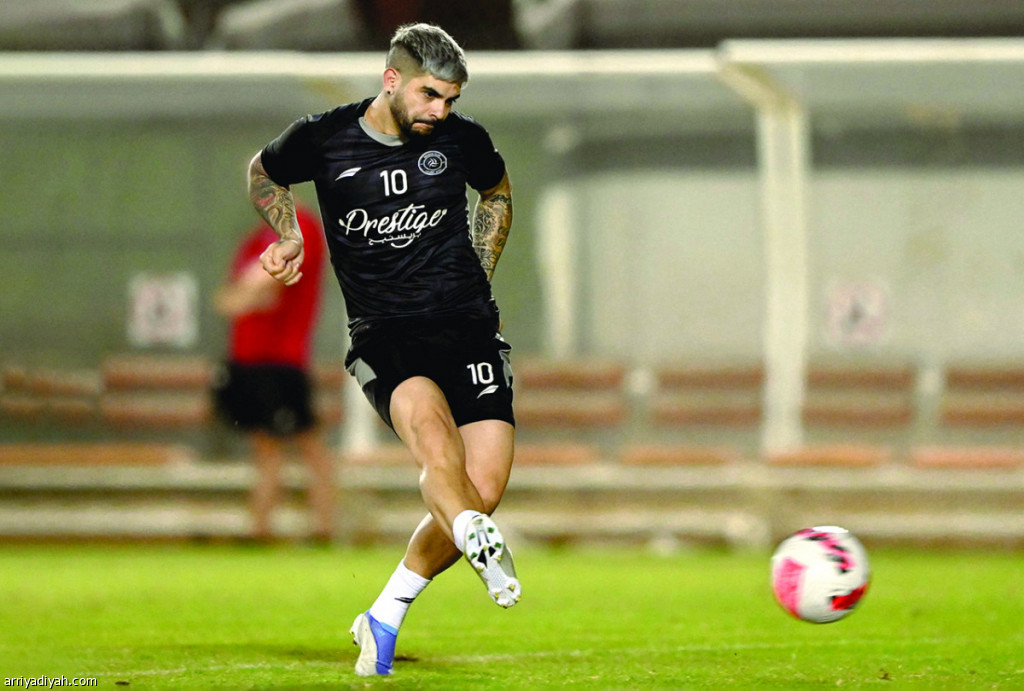 صورة التقطت أمس للأرجنتيني إيفر بانيجا، لاعب فريق الشباب الأول لكرة القدم، يمرر الكرة أثناء التدريبات (المركز الإعلامي ـ الشباب)