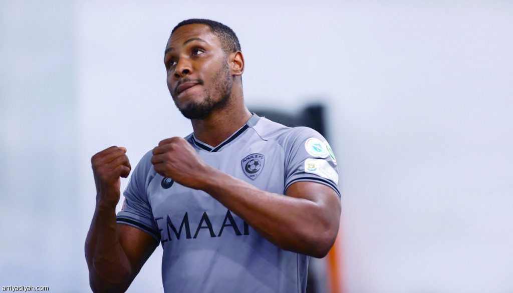 صورة التقطت أمس للنيجيري أوديون إيجالو، لاعب فريق الهلال الأول لكرة القدم، قبل بداية الحصة التدريبية التي شارك في جزء منها (المركز الإعلامي ـ الهلال)