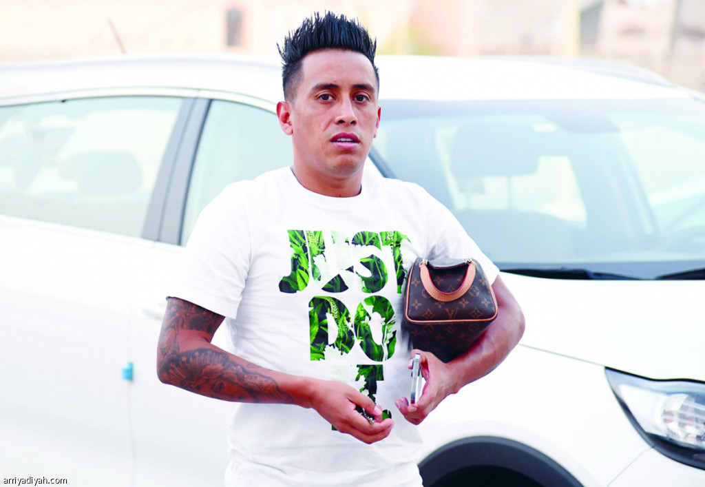 صورة التقطت أمس للبيروفي كريستيان كويفا، لاعب فريق الفتح الأول لكرة القدم، لدى وصوله إلى مقر النادي (المركز الإعلامي ـ الفتح)