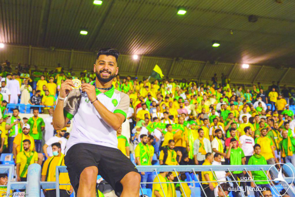صورة التقطت في 30 مايو الماضي لحسن المجحد، لاعب وسط فريق الخليج الأول لكرة القدم، يحمل خلال احتفاليةٍ جماهيريةٍ في ملعب الأمير محمد بن فهد في الدمام ميدالية المركز الأول بعد فوز فريقه بلقب دوري “يلو” لأندية الدرجة الأولى والصعود إلى دوري كأس محمد بن سلمان للمحترفين (المركز الإعلامي - الخليج)