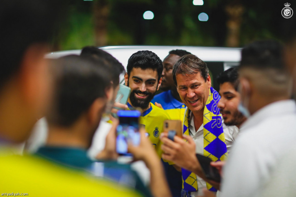 وصل الفرنسي رودي جارسيا، مدرب فريق النصر الأول لكرة القدم، إلى الرياض، استعدادًا لبدء مهمته مع الأصفر العاصمي بعد التعاقد معه رسميًّا. ومن المقرَّر أن يجتمع مسلي آل معمر، رئيس النادي، مع الفرنسي جارسيا ليناقشا عديدًا من الملفات، إلى جانب متابعة تحضيرات الفريق للموسم الجديد.. وفي الصورة التي التقطت أمس جارسيا محاطًا بجماهير نصراوية استقبلته بمطار الملك خالد الدولي في الرياض عند وصوله وأخذت معه صورًا تذكارية (المركز الإعلامي ـ النصر)