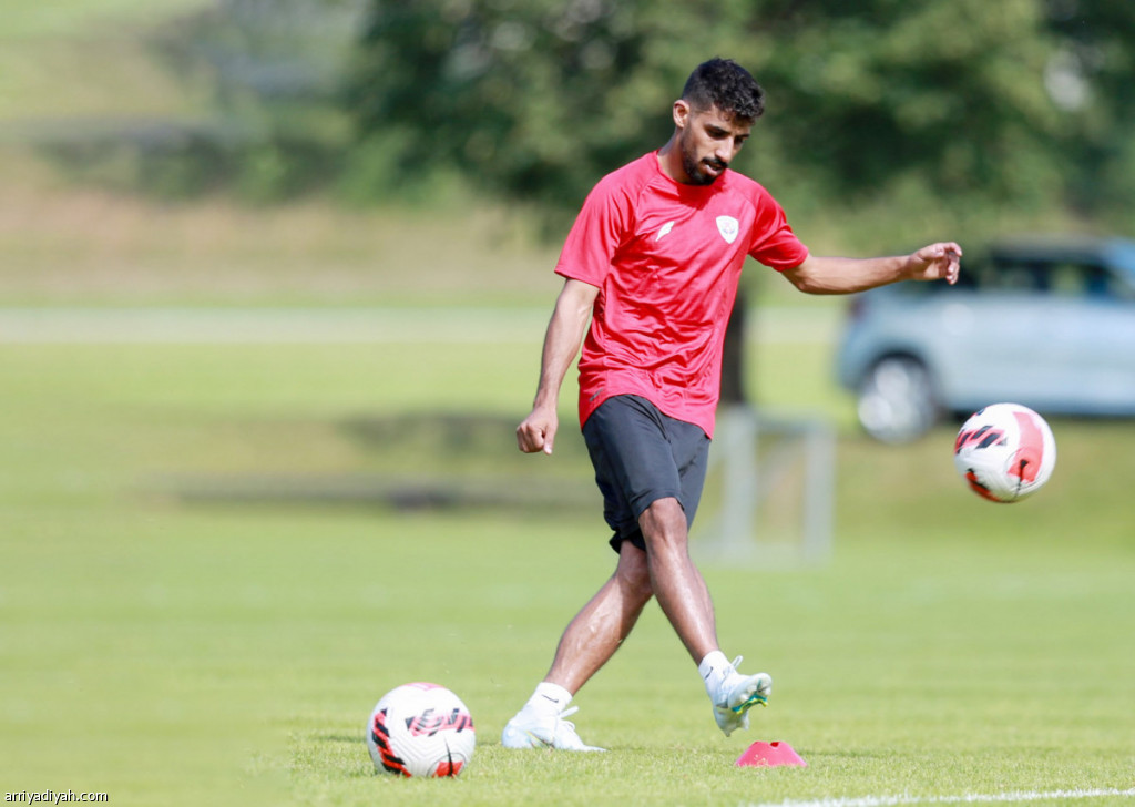 صورة التقطت أمس لمطير الزهراني، لاعب فريق أبها الأول لكرة القدم، يمرر الكرة خلال التدريبات الجماعية في النمسا (المركز الإعلامي ـ أبها)