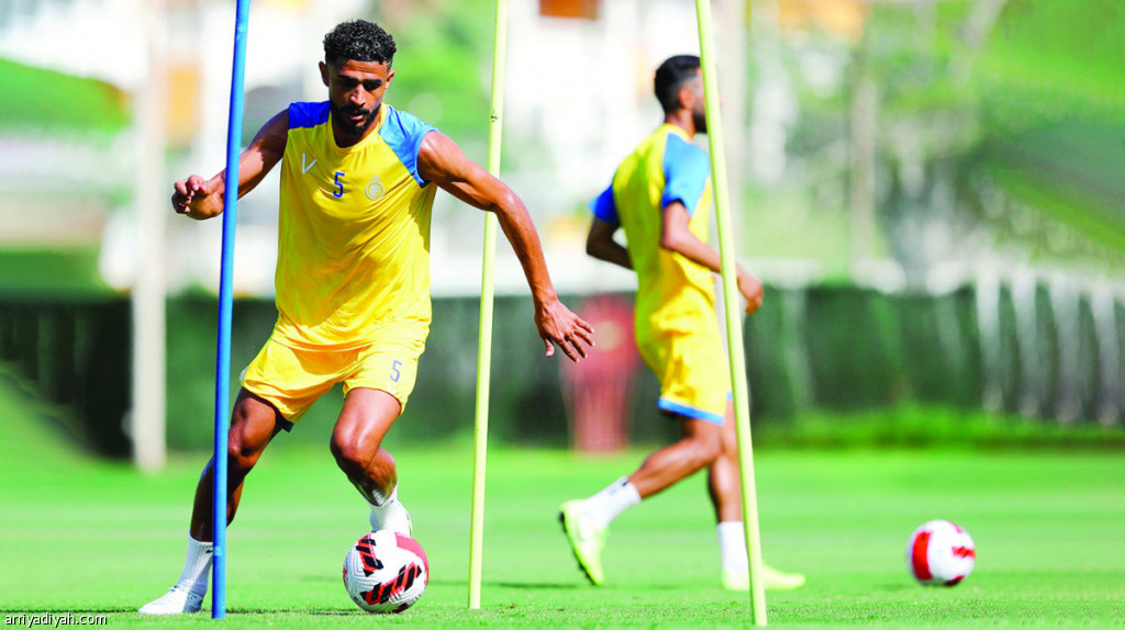 صورة التقطت أمس لعبد الإله العمري، لاعب فريق النصر الأول لكرة القدم، يتدرَّب بالكرة بين الحواجز خلال الفترة الصباحية في معسكر ماربيا الإسبانية (المركز الإعلامي ـ النصر)