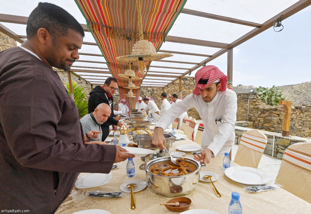 وتذوّق أعضاء اللجان الأطباق التقليدية لمنطقة عسير، على مائدة غداء خلال الجولة، التي أعدّتها لهم اللجنة المنظِّمة، بحضور معيض الشهري، مدير البطولة.