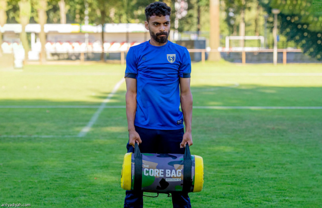 صورة التقطت أمس الأول لحسن العمري، جناح التعاون، يحمل حقيبة خاصة بالتمارين اللياقية خلال حصة تدريبية للفريق ضمن معسكر هولندا (المركز الإعلامي ـ التعاون)