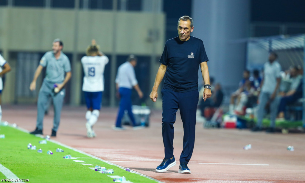 صورة التقطت أمس الأول لليوناني دونيس، مدرب فريق الفتح الأول لكرة القدم، خلال مواجهة فريقه أمام الهلال التي خسرها 0ـ1 دوريًا(المركز الإعلامي ـ الفتح)