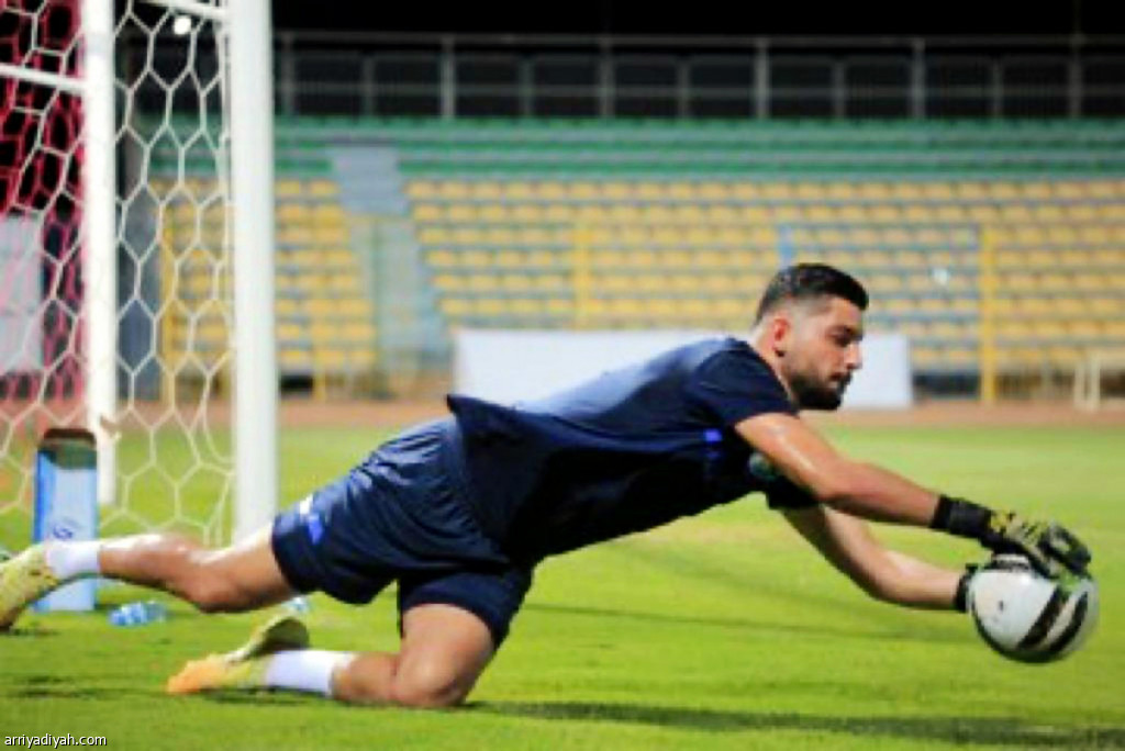 صورة التقطت أمس للبناني مصطفى مطر حارس مرمى فريق العروبة يلتقط الكرة أثناء التدريبات (المركز الإعلامي ـ العروبة)