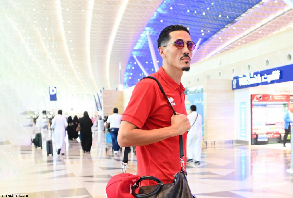 صورة التقطت أمس للمغربي فيصل فجر، لاعب وسط الوحدة، أثناء المغادرة إلى بريدة لمواجهة التعاون، اليوم، في الدوري(المركز الإعلامي ـ الوحدة)